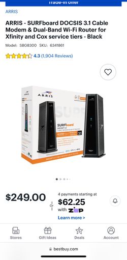 ARRIS - SURFboard DOCSIS 3.1 Cable Modem & Dual-Band Wi-Fi Router for Xfinity and Cox service tiers - Black$100Woodway, WA