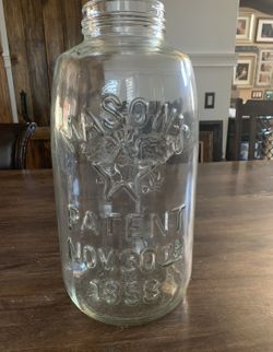 Vintage, Giant 18.5” Mason Jar. Patent Nov 30th 1858 Eagle Glass decor. No Lid. Excellent Used Condition. $80San Marcos, CA