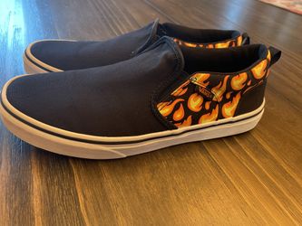 Vans Black Flames Youth Slip On Shoes. Size 7. Excellent Used Condition. Only worn a few times before my son outgrew them. $25La Costa, CA