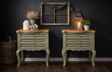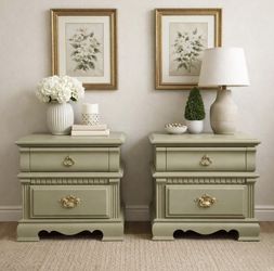 Vintage Solid Wood Nightstands – Sage Green, 3 Drawer, Farmhouse Style (Pair)$295Orange, CA