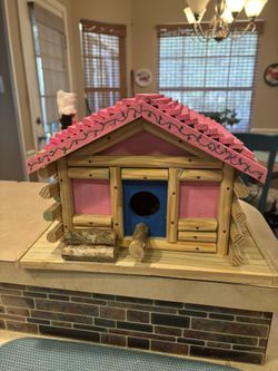New Handmade Pink Log Cabin Birdhouse With Chimney And Vines $30Grand Bay, AL