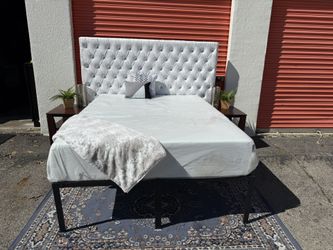 Never Used King Size Canopy Platform Bed Frame With Tufted Headboard $599Columbus, OH
