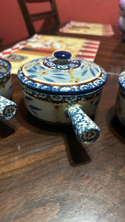 Temptation Blue Old World Stick Handled Individual Casserole W Lid - 5”$10Austin, TX