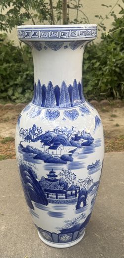 Beautiful Blue and White Tall Vase with Chinese Landscape Design - 24” $95Long Beach, CA