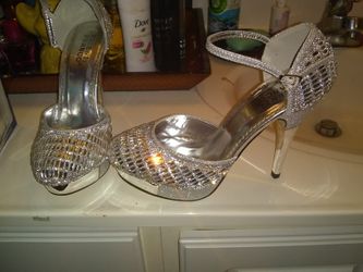 Beautiful rhinestone silver shoes never worn size 8$45Charlotte, NC