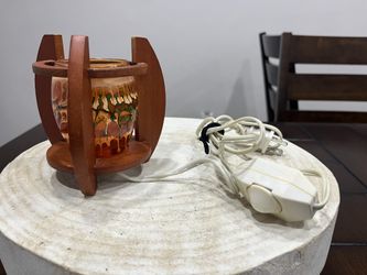 Vintage Art Glass Electric Oil Warmer Wax Tart Burner Tripod Wood Frame Dimmer WORKING$20Miami, FL
