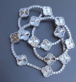 925 Silver Tennis Necklace With Clovers And Moissanites GRA Certificate $765El Paso, TX