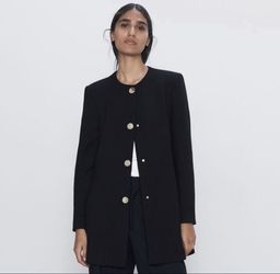 Zara Black Collarless Retro Style Winter Coat $85Carrollton, TX