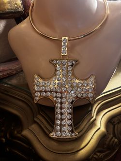Large cross choker rhinestones gold tone extravaganza statement piece, Christian necklace$130Los Angeles, CA