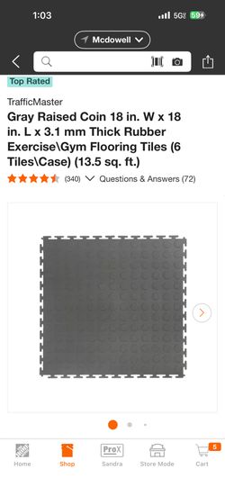 Gray Raised Coin 18 in. W x 18 in. L x 3.1 mm Thick Rubber Exercise\Gym Flooring Tiles (6 Tiles\Case) (13.5 sq. ft.)$25Phoenix, AZ