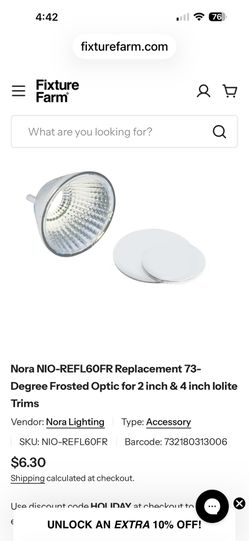 Nora NIO-REFL60FR Replacement 73-Degree Frosted Optic for 2 inch & 4 inch Iolite Trims$4Phoenix, AZ