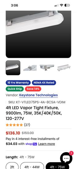 4ft LED Vapor Tight Fixture,$70Phoenix, AZ