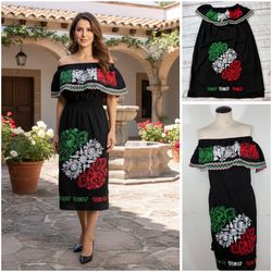 Mexican Tricolor Off Shoulder Black Dress Vestido XL$45Whittier, CA