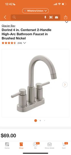 Glacier Bay Dorind 4 in. Centerset 2-Handle High-Arc Bathroom Faucet in Brushed Nickel$40Los Angeles, CA