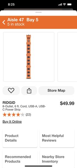 RIDGID 8-Outlet, 6 ft. Cord, USB-A, USB-C Power Strip$35Los Angeles, CA