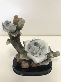 Vintage Collectible White Roses Figurine Flowers And Leaf Details On Flaw.$40Miami, FL