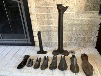 2 Vintage Cast Iron Shoe Cobbler Stands With 6 Cast Iron Forms And 1 Wood Form. $95 For All of$80North Olmsted, OH