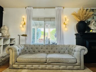 RH Gray Tufted Sofa $200Victorville, CA