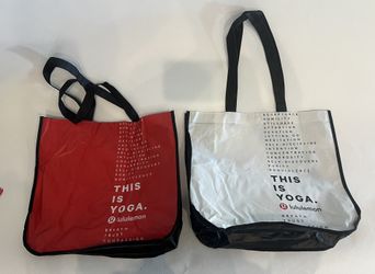2 Lululemon Red & White Reusable Shopping Gym Tote Lunch Bag Large This is Yoga$12Mesa, AZ