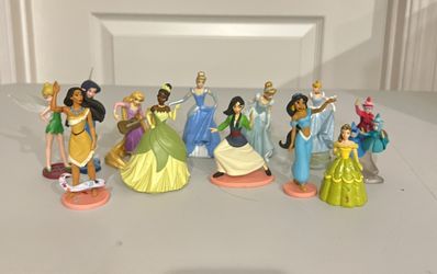 DISNEY PRINCESS 12 Figure Play Set Cinderella Rapunzel Mulan Tiana & VTG Stamp $25Mesa, AZ