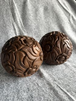 Pair of hand-carved wooden spheres $20Tumwater, WA
