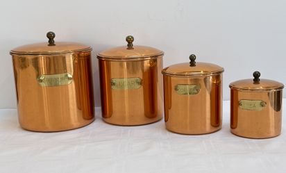 Vintage MCM Copper Canister Set Brass Accents Patina Nesting Flour Sugar Coffee Tea Portugal$100Phoenix, AZ