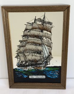 Rare Vintage MCM Wood Framed 13” × 9" Reverse Painted Mirror The Thessalus Clipper Ship, Sailing, Exploration, Navigator, Nautical Art England$75Phoenix, AZ