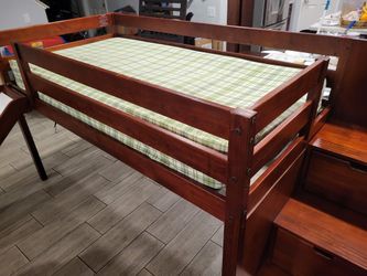 JACKPOT! Contemporary Low Loft Twin Bed with a 3 Drawer Stairway and Slide, Cherry