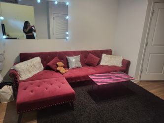 Couch Wine Color, Black Rug, And Coffee Table$400Alafaya, FL