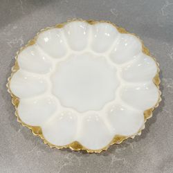VINTAGE Anchor Hocking White Milk Glass Deviled Egg Plate Platter 10" w/Gold Rim $30Los Angeles, CA