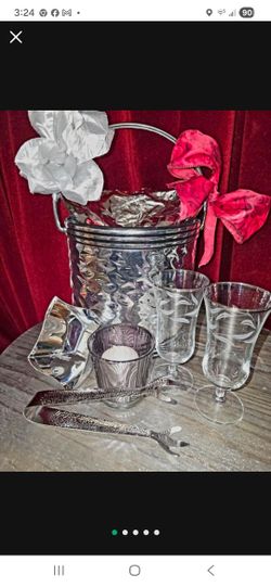 Ice Bucket with 2 Wine Glasses Silver Trim,candle ,Bowl& Ice Tongsl$28Las Vegas, NV