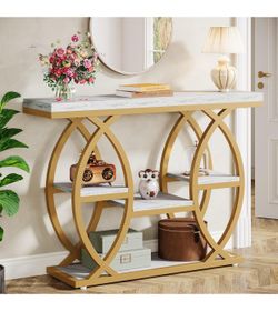 LITTLE TREE 55 inch Faux Marble Gold Console Table Modern Entryway Table $115Corona, CA