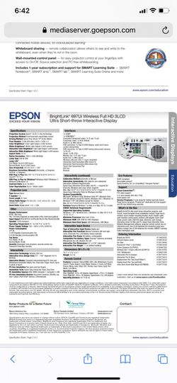Epson Blightlink 697ui Projector & White Board$800Menifee, CA