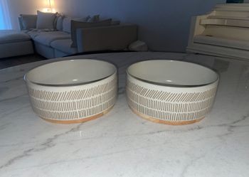 XL ceramic Dog Bowls Wooden Base $25Phoenix, AZ
