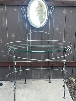 iron vanity table with a glass top and an attached oval mirror$28La Mesa, CA
