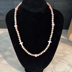 Pink Cross And Flower Necklace With Light Beige Beads Women’ Teen Jewelry $15Temecula, CA