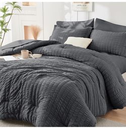 HYMOKEGE 7 Piece King Size Comforter Set Seersucker, All Season Luxury Bed in a Bag for Bedroom, Bedding Set with Comforters, Sheets, Pillowcases & Sh$50Hialeah Gardens, FL