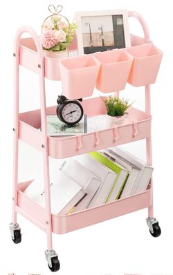 danpinera 3-Tier Rolling Cart, Utility Cart Mobile Metal Rolling Storage Cart with Lockable Wheels & Hanging Cups & Hooks for Kitchen, Bathroom, Offic$15Montebello, CA