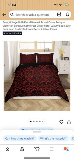 Red Black Ombre Gothic Bedding Set Queen For Boys,Vintage Goth Floral Damask Duvet Cover Antique Victorian Baroque Comforter Cover Hotel Luxury Bed Co$15Montebello, CA