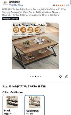 HOMISSUE Coffee Table, Rustic Rectangle Coffee Table with 2-Tier Storage, Engineered Wood Center Table with Open Shelves, Minimalist Coffee Table for $70Bakersfield, CA