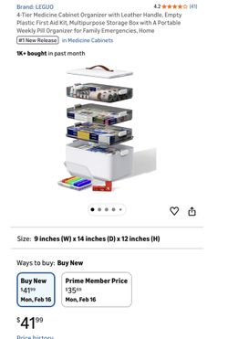 4-Tier Medicine Cabinet Organizer with Leather Handle, Empty Plastic First Aid Kit, Multipurpose Storage Box with A Portable Weekly Pill Organizer for$20Bakersfield, CA