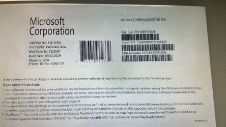 Window 10 Home 64 Bit DVD & Product Key$30Merced, CA
