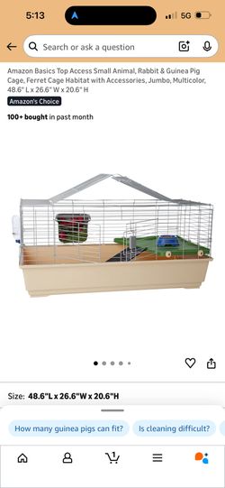 Free Litter Top Access Small Animal, Rabbit & Guinea Pig Cage, Ferret Cage Habitat with Accessories, Jumbo, Multicolor, 48.6" L x 26.6" W × 20.6" H$32Phoenix, AZ