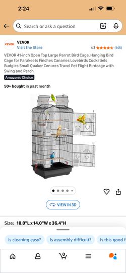 VEVOR 41-inch Open Top Large Parrot Bird Cage, Hanging Bird Cage for Parakeets Finches Canaries Lovebirds Cockatiels Budgies Small Quaker Conures Trav$42Phoenix, AZ