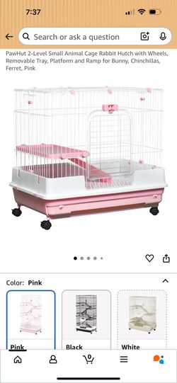 PawHut 2-Level Small Animal Cage Rabbit Hutch with Wheels, Removable Tray, Platform and Ramp for Bunny, Chinchillas, Ferret, Pink$48Phoenix, AZ
