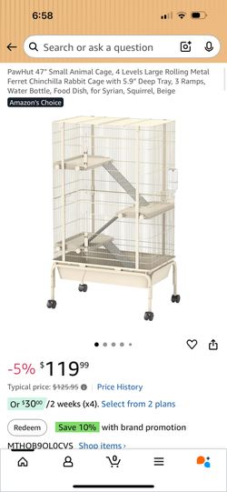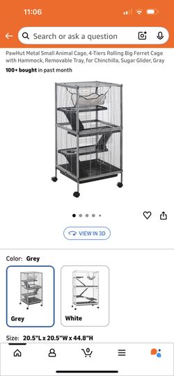 PawHut Metal Small Animal Cage, 4-Tiers Rolling Big Ferret Cage with Hammock, Removable Tray, for Chinchilla, Sugar Glider, Gray$56Phoenix, AZ