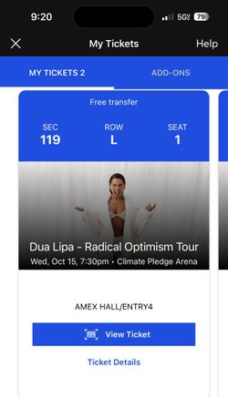 Dua Lipa Seattle Tickets (October 15)$250Bellevue, WA