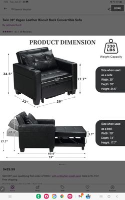 Twin 39'' Wide Faux Leather Biscuit Back Convertible Sofas$700Richardson, TX