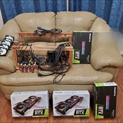 mining rig for sale (4X 3080 graphics cards, EVGA power supply, motherboard, gpu risers, adapters, fans, etc)