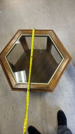 Hexagonal Wood & Glass Side Table, Medium Brown, Living Room, Indoor$40Anaheim, CA